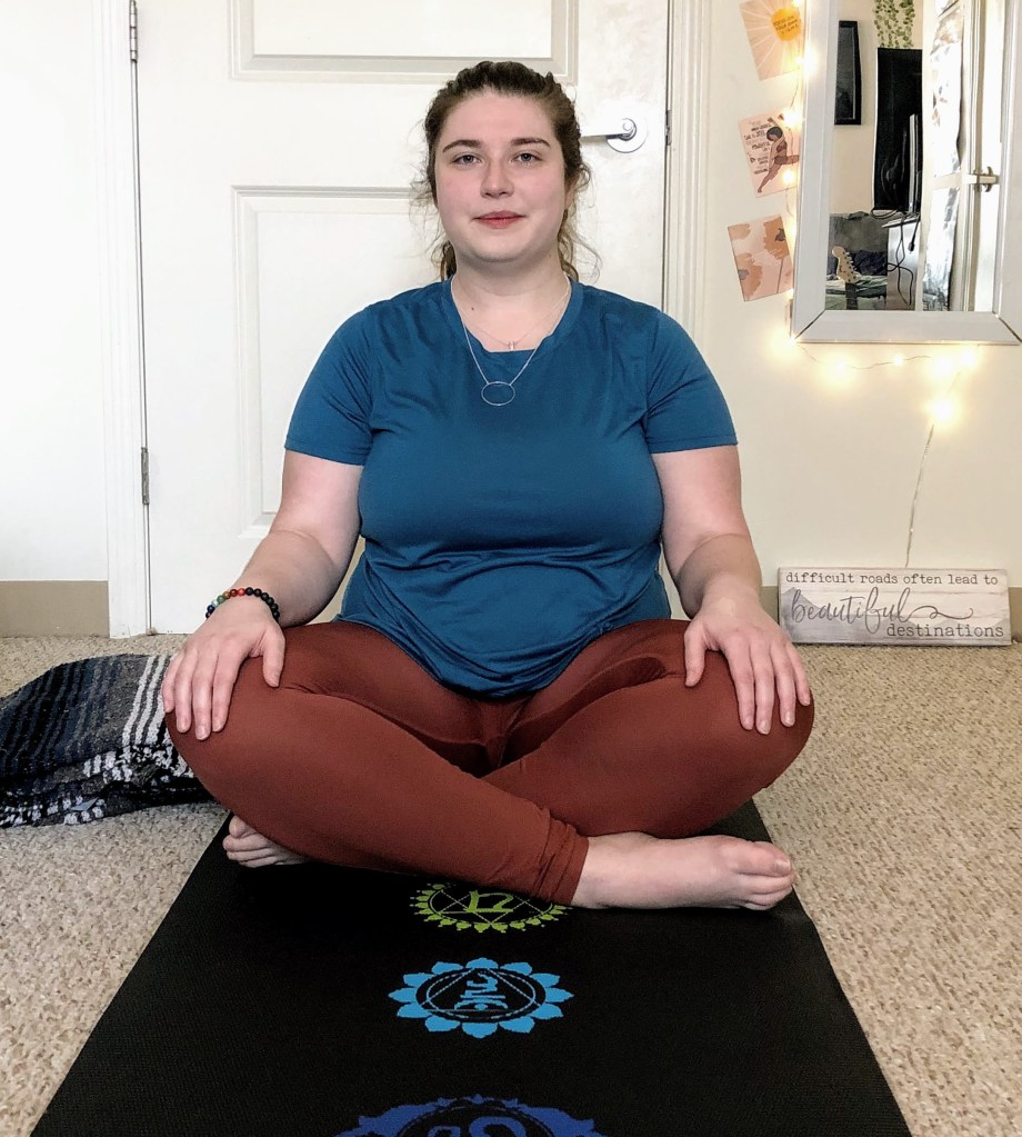 To start off, I’m apologize about my face in these pictures. I tend to be giggling or just trying my best to keep a neutral face (which I’m not used to). Anyway, today’s pose is Easy pose. The Sanskrit name is Sukhāsana. The reason it’s one of my favorite poses is believe it or not, I think you need to be more attentive in this pose. It’s really easy to slouch back and just let your body naturally sink in.