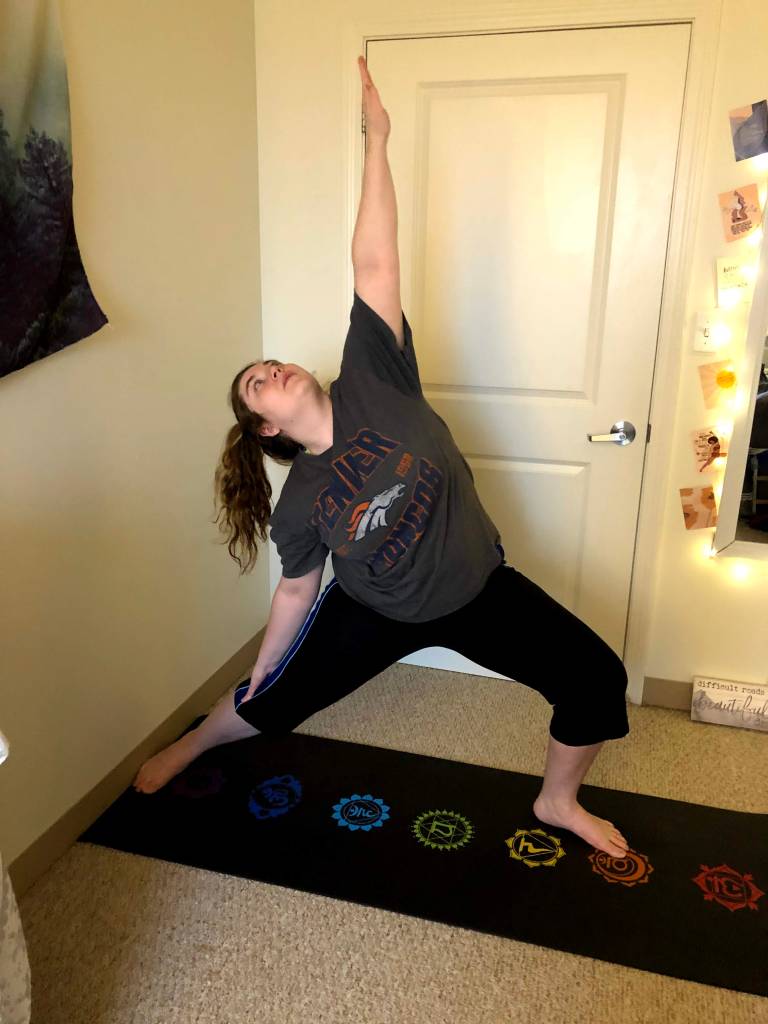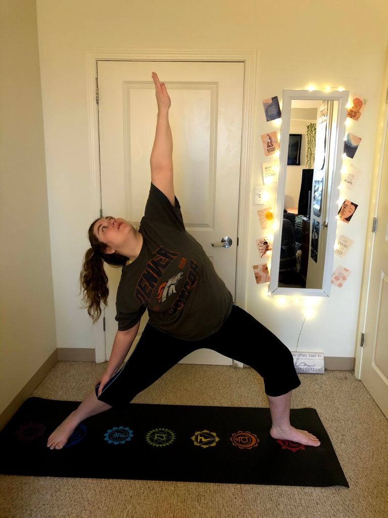 The Sanskrit is a mouthful this time around: Viparita Virabhadrasana. I absolutely love this pose. It’s very opening but soothing at the same time. I love the warrior poses because they all really build up on each other. Your legs and feet will feel a sense of familiarity because it’s just like Warrior I & II. However, you are going to be opening up your chest by placing your back hand on your back calf (right leg with right hand, and vice versa). Make sure you engage with this pose on both sides of the body (just like you have been with all of the warrior poses). Last but not least, the modification is simply going to be putting your foot next to wall to help create balance for yourself. Tomorrow, we’ll be changing it up a bit but then back to a warrior pose for Mother’s Day. Enjoy!